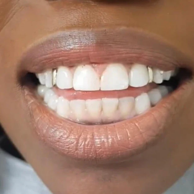 Custom made gap filler is designed to sit between two teeth and cover your gap. You can also wear this without a gap.