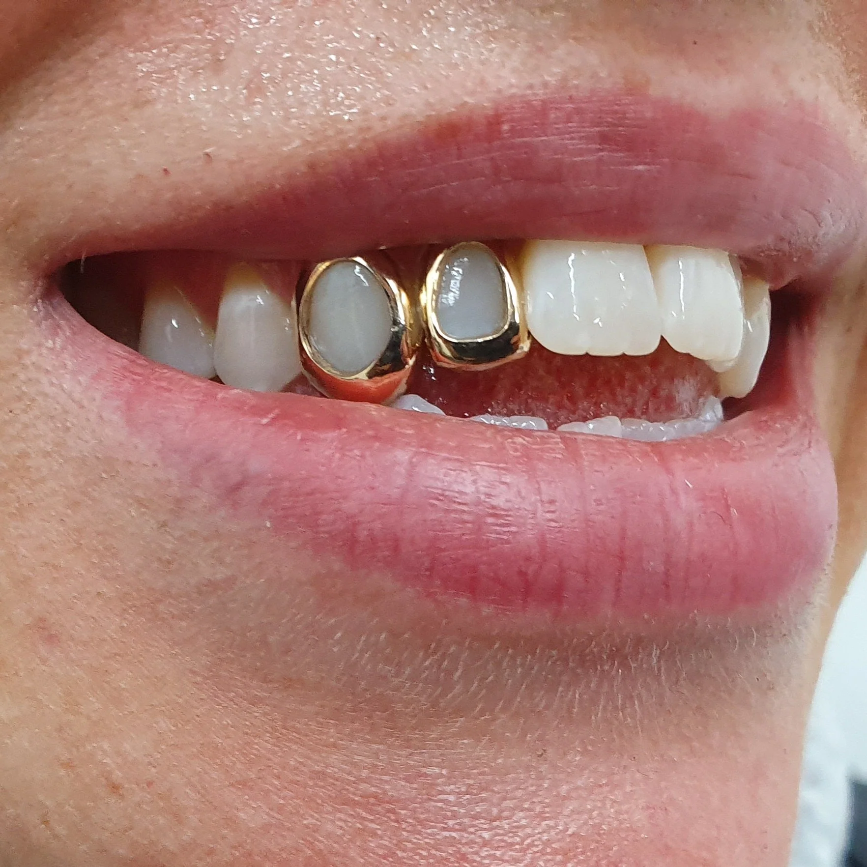 Two windows covers two teeth and you can choose any teeth on your top or bottom 8 and is available in silver, yellow or white dental gold, 10k, 14k and 18k solid yellow, rose and white gold (not plated). Our quality is guaranteed and comes with a standard shiny/ mirror finish. To add more caps, select the quantity and specify which teeth you want made.