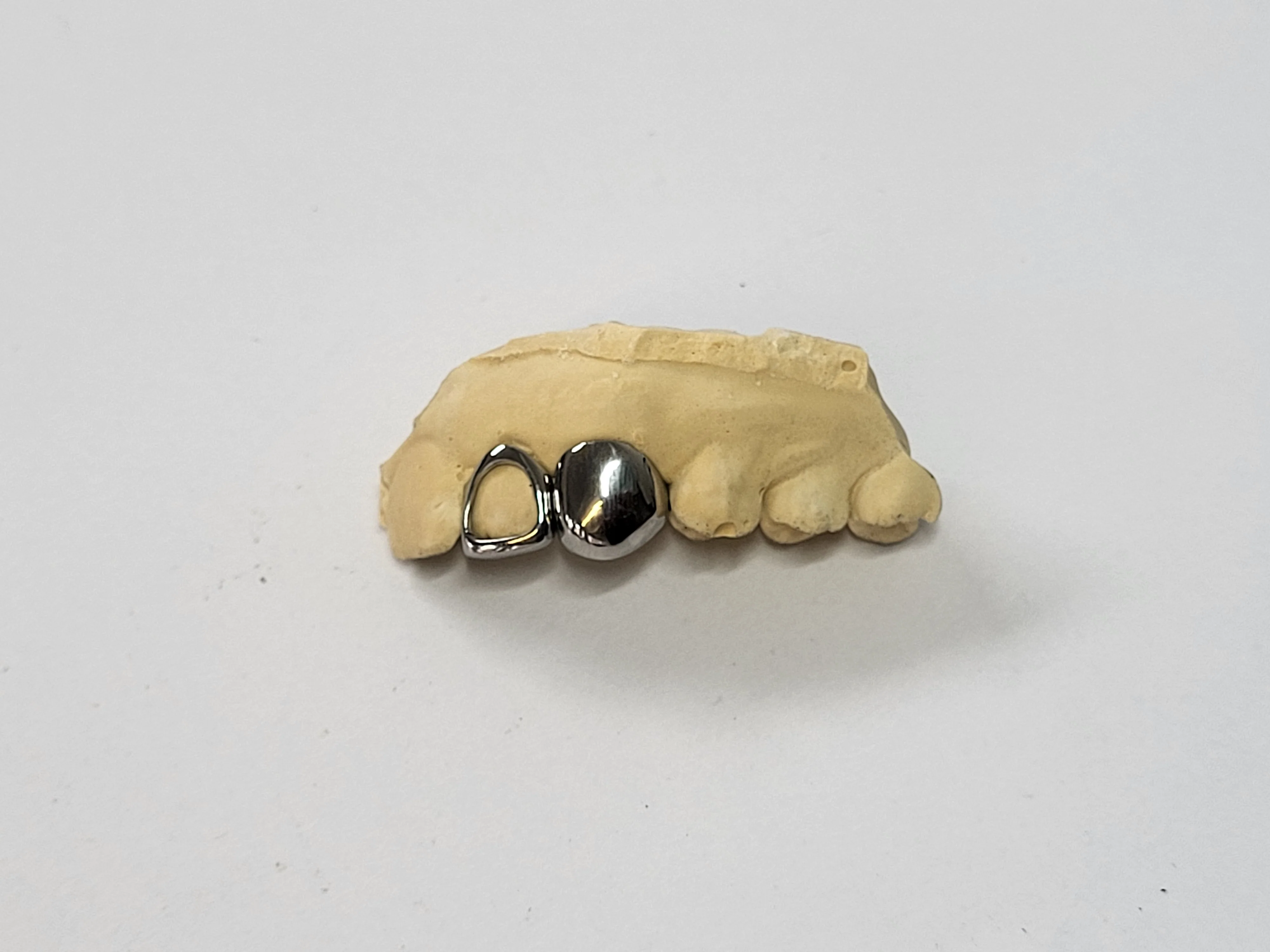 Window and solid cap set covers two teeth and you can choose any teeth on your top or bottom 8 and is available in silver, yellow or white dental gold, 10k, 14k and 18k solid yellow, rose and white gold (not plated). Our quality is guaranteed and comes with a standard shiny/ mirror finish. To add more caps, select the quantity and specify which teeth you want made.